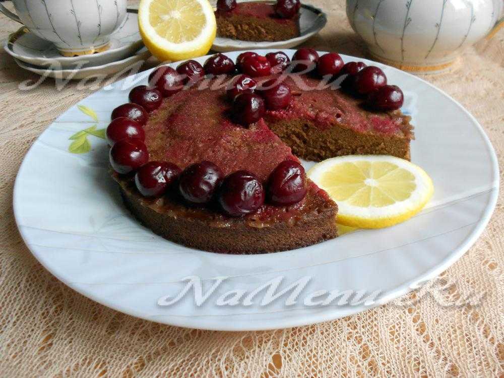 Если свободного времени у вас чуть больше 10 минут, то шоколадный пирог можно украсить свежей вишней. Такое угощение уж точно не останется незамеченным и неоцененным.