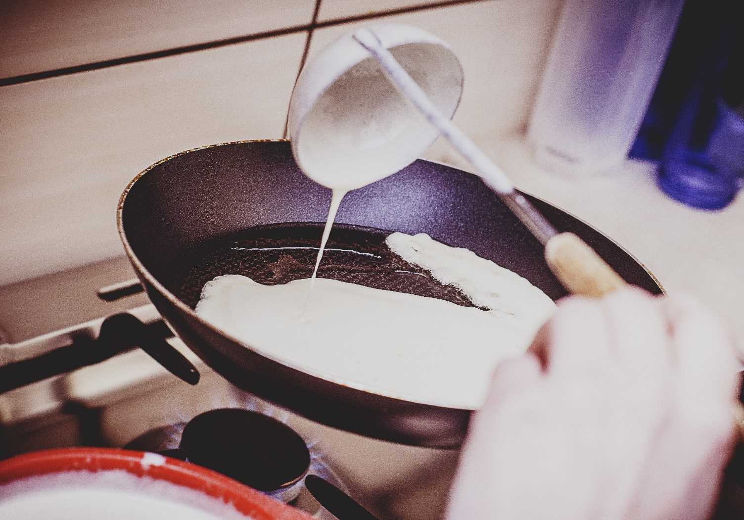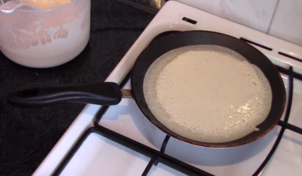 Возможно, при жарке первого блина станет понятно, что консистенция теста недостаточно густая или же наоборот — недостаточно жидкая. В таком случае в тесто необходимо добавить немного молока или муки и попробовать испечь очередной блинчик.