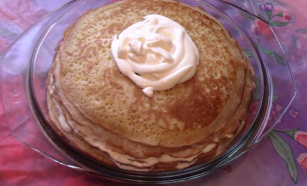 По истечению 30 минут вытаскиваем блинчики. Сверху можете намазать сметаной. И теперь можно подавать к столу. Приятного чаепития!