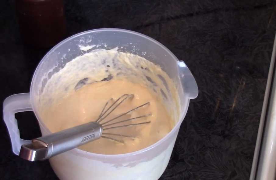 3. Тесто получилось у нас не совсем жидкое и не совсем густое. По консистенции оно напоминает жидкуб сметану.