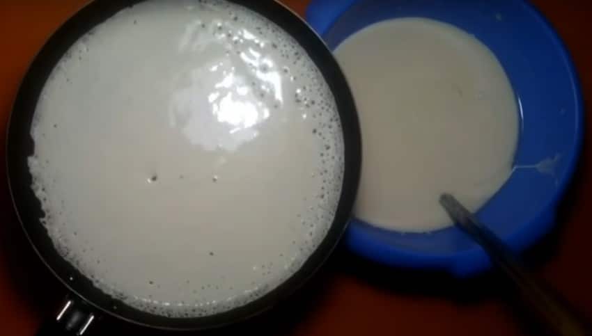 1. В кастрюлю наливаем молоко, ставим на средний огонь и следим, чтобы оно не закипело.
