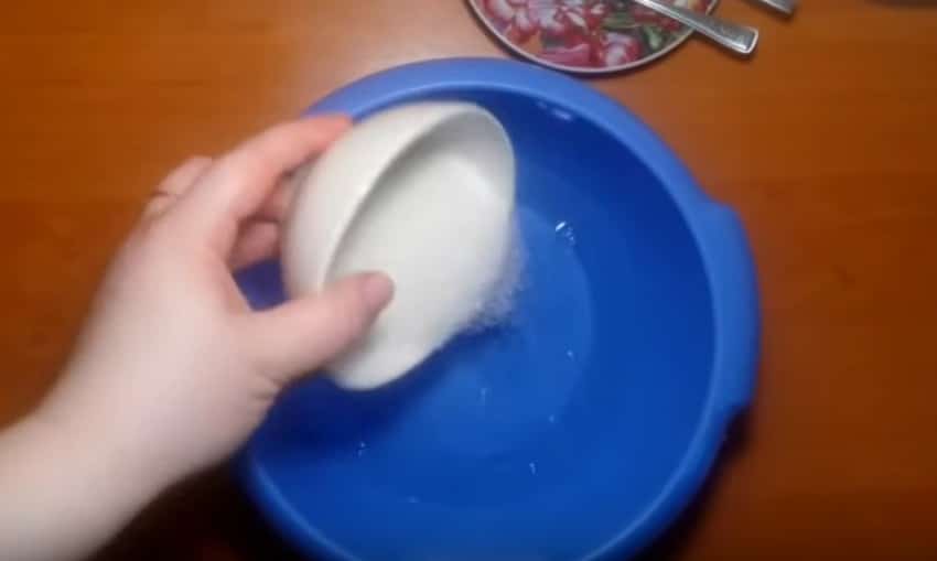 - После этого добавьте щепотку соли, чайную ложку соды и мешайте, пока на поверхности не появятся пузырьки.