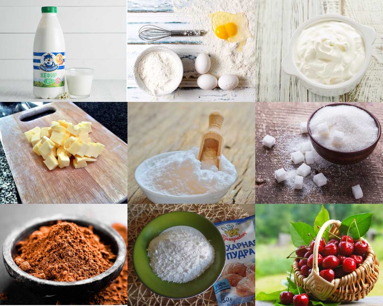 Ингредиенты для торта «Черный принц» с вишней на кефире