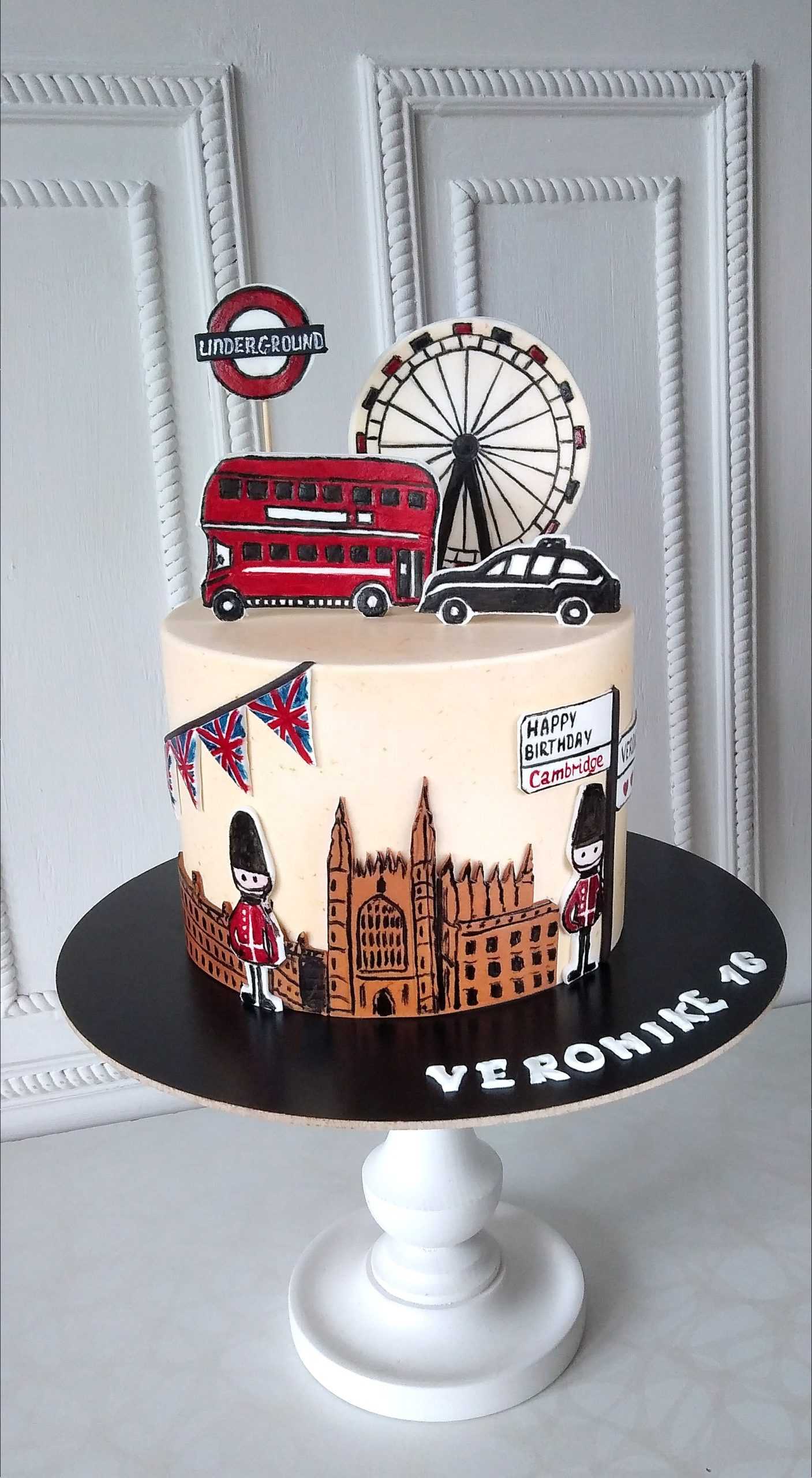 - Утром перевернуть чашку, снять пленку. Украсить торт готовыми топперами и можно радовать именинника.