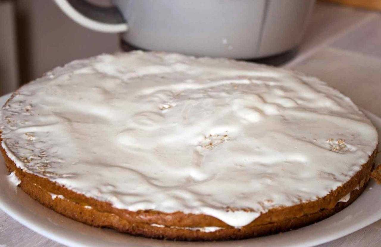 - Разделите массу на пару частей и запеките каждую в духовом отсеке вашей плиты в течение нескольких минут при температуре 180-200 градусов. Готовность проверяйте зубочисткой — воткните ее в пласт, а когда достанете, на палочке не должно быть разводов сырого теста.