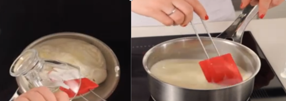 - Мука и молоко добавляются в два этапа. После добавления половины данных ингредиентов тесто хорошо вымешивается. После чего добавляется оставшаяся часть молока и муки и тоже тщательно перемешивается.