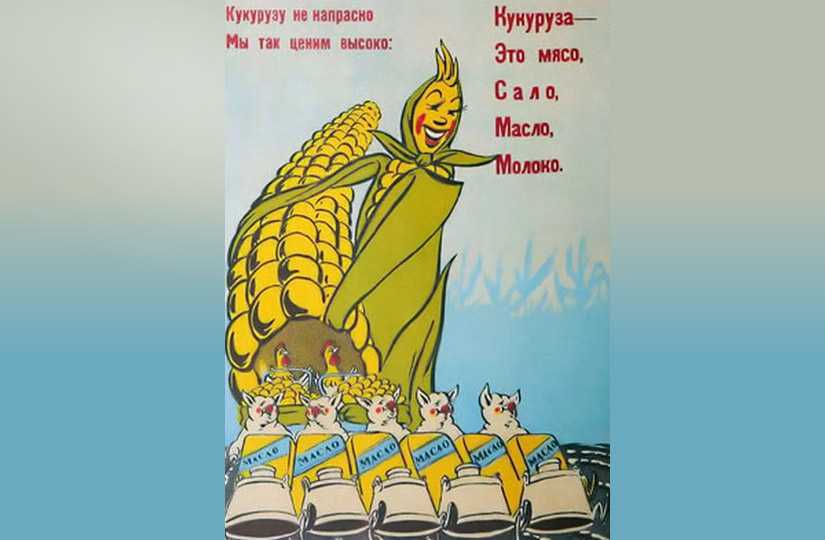 Когда глава государства Никита Хрущев узнал о масштабах урожая кукурузы в Америке и достижениях местных фермеров, он принял решение переориентировать сельское хозяйство СССР с традиционных зерновых культур на новую. По его задумке, чудесное растение должно было «вытащить» сразу несколько сфер промышленности. На агитплакатах того времени можно было встретить подобные стихи: