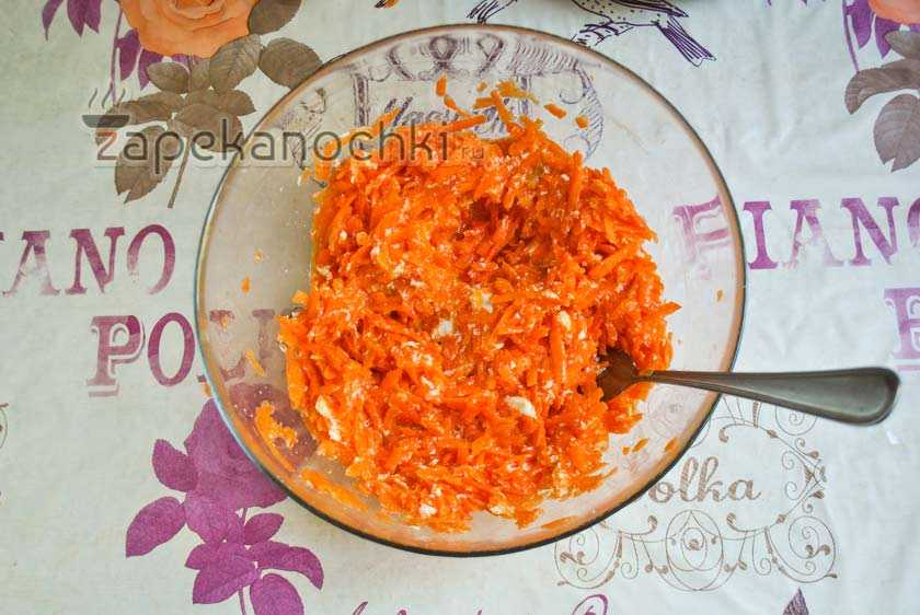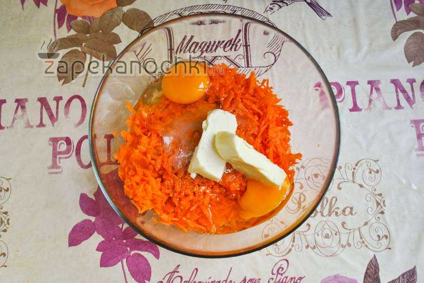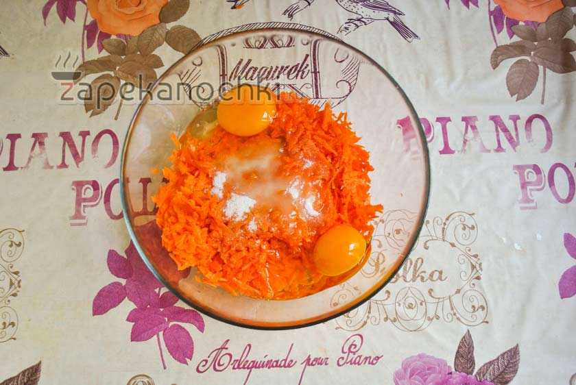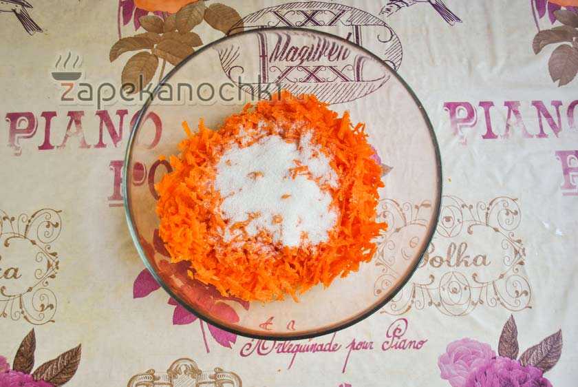 3. Добавляем сахар. Его количество варьируется и зависит от сладости моркови, но лучше класть немного, ведь запеканка и так получится достаточно сладкой.