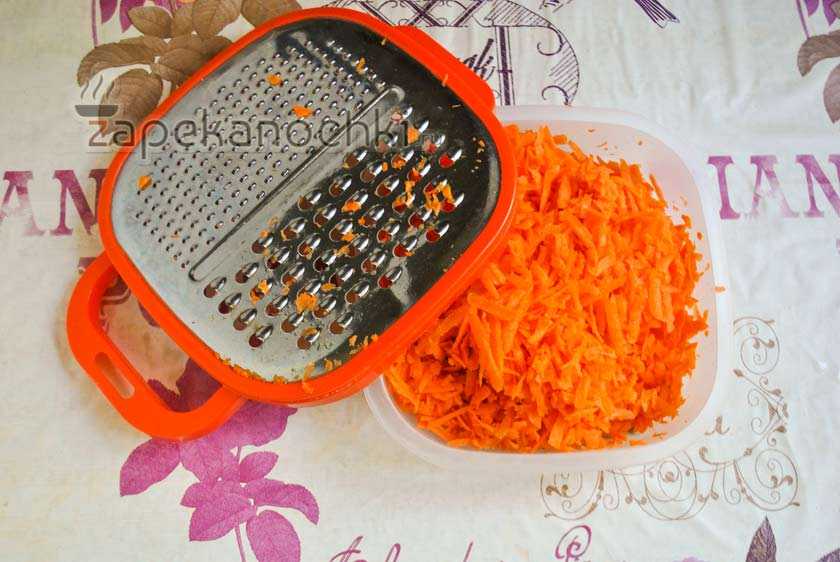 2. Морковь чистим, моем под проточной водой и натираем на крупной тёрке. Кто-то взбивает в блендере, но мне кажется так вкуснее.