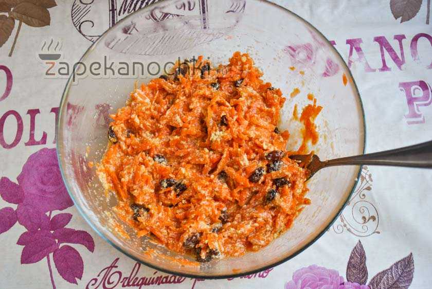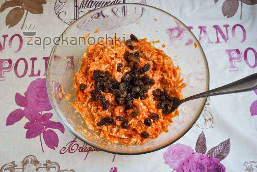 10. В постоявшее морковное тесто добавляем промытый изюм или любые другие ваши любимые сухофрукты, орехи. Можно и яблочко потереть.