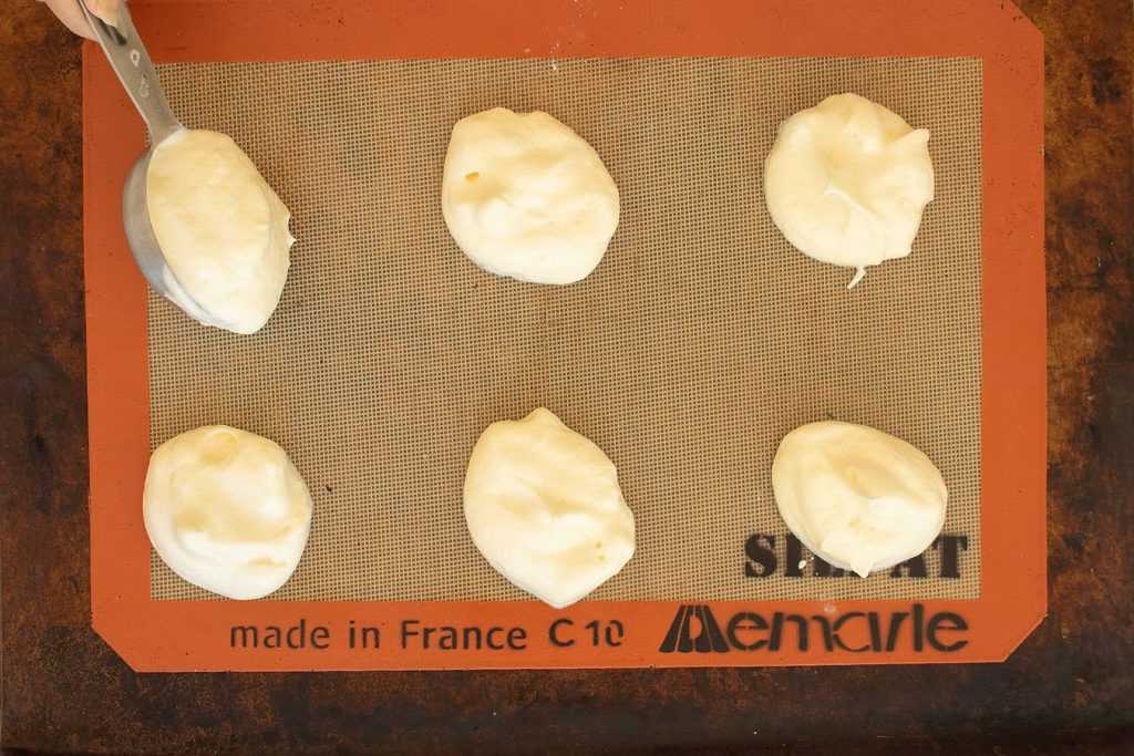 Выложите смесь ложкой на подготовленный противень высотой 1,25-1,90 дюйма и на расстоянии около 0,5 дюймов друг от друга.
