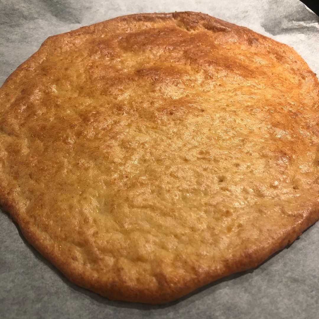 - Верхний пергамент по завершению процесса раскатывания снимается. У коржа формируются бортики. После этого можно выпекать основу в течение 15 минут.