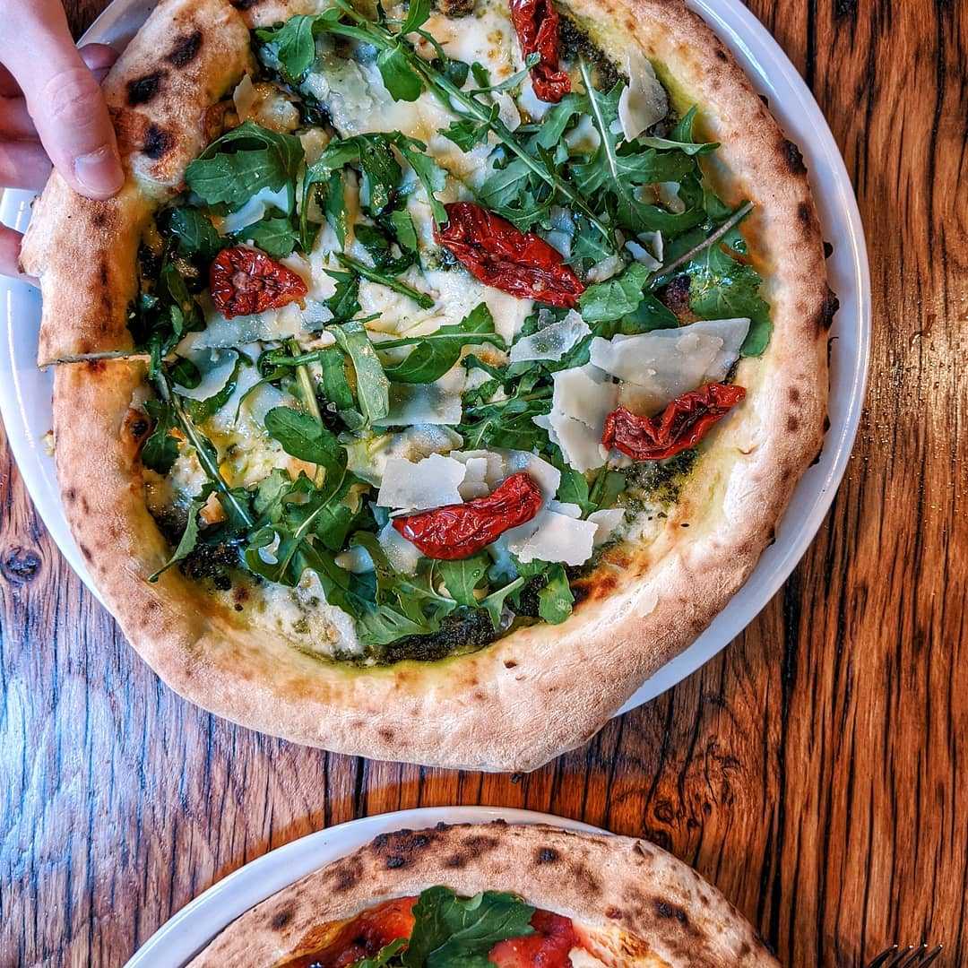 Песто — Попробуйте заменить пиццу или соус маринара. для песто из базилика! Это невероятно вкусно и полностью изменит вашу пиццу. Я люблю делать пиццу песто с вяленые помидоры и грибы.