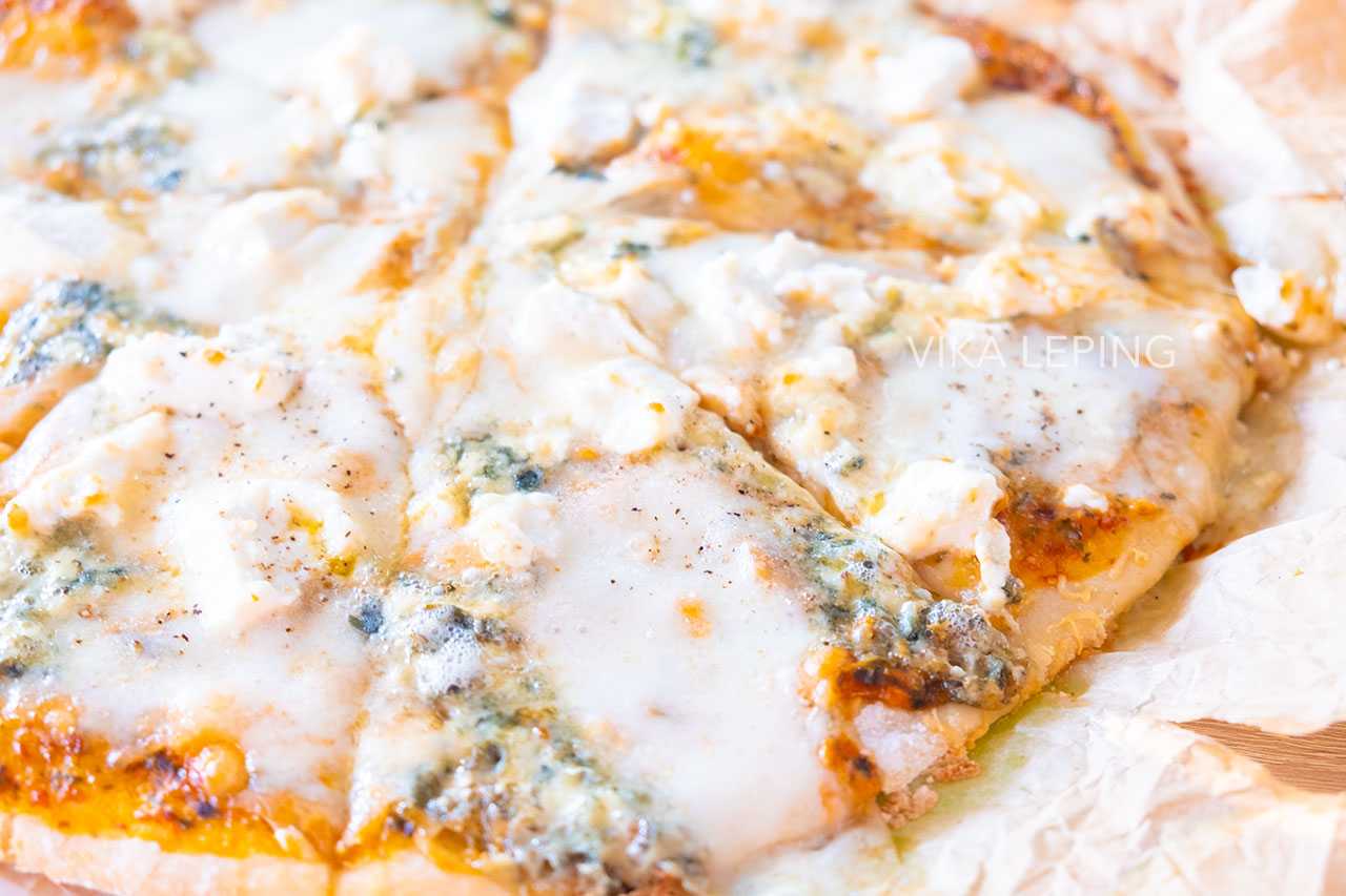 Какая самая вкусная пицца в мире по версии большинства людей? Конечно, итальянская пицца 4 сыра! Состав и сыры для пиццы отличаются место от места, я скомпоновала мои самые любимые: Моцарелла, Горгонзола, Пармезан и Рикотта (по классике последнюю нужно заменить на Эмменталь). Как я их выбрала, по каким вкусовым признакам, как и чем их можно заменять я расскажу чуть позже.