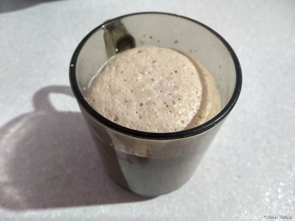 Вливаем в чашу с продуктами забродившие дрожжи. Добавляем соль и сахарный песок по вкусу.