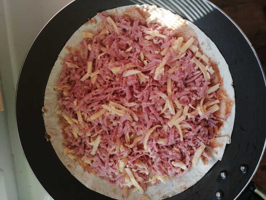 Рецепт 6: пицца-пятиминитка из лаваша на сковороде (пошагово)