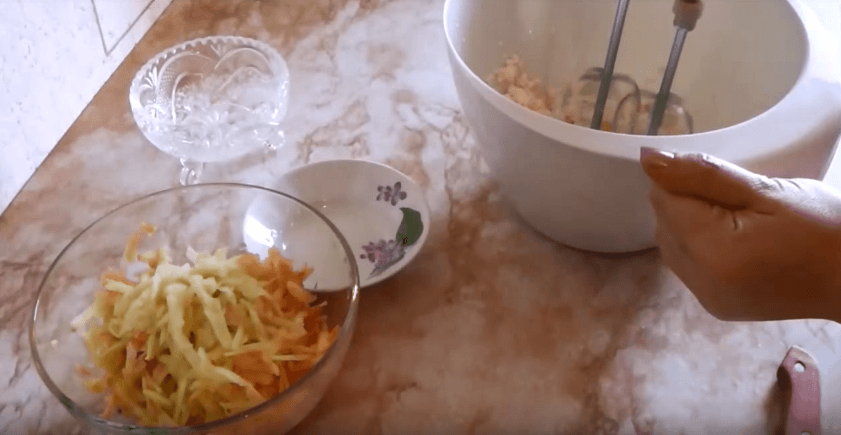 6. Яблоки перетираем на крупной терке и смешиваем с творожной начинкой.