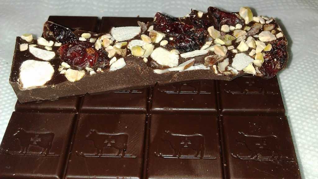 Если вы покупаете не чистый шоколад, а с вкусными добавками, то в нём будут кусочки ягод, фруктов или орешков.