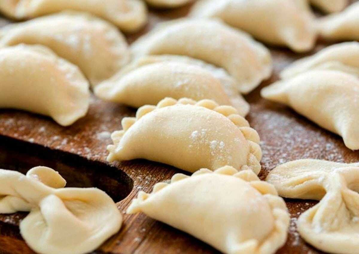 Традиционное тесто — пресное, но его можно подсластить, если делаете вареники с десертной начинкой. Оно получается крутым, пластичным, мягким, не липким, не растрескивается при заморозке и не лопается при варке.