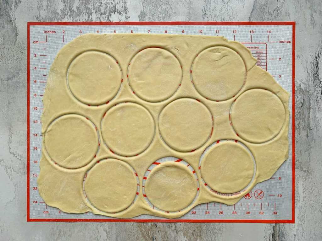 Шаг 4. Из раскатанного теста вырежьте кружочки специальной формочкой.