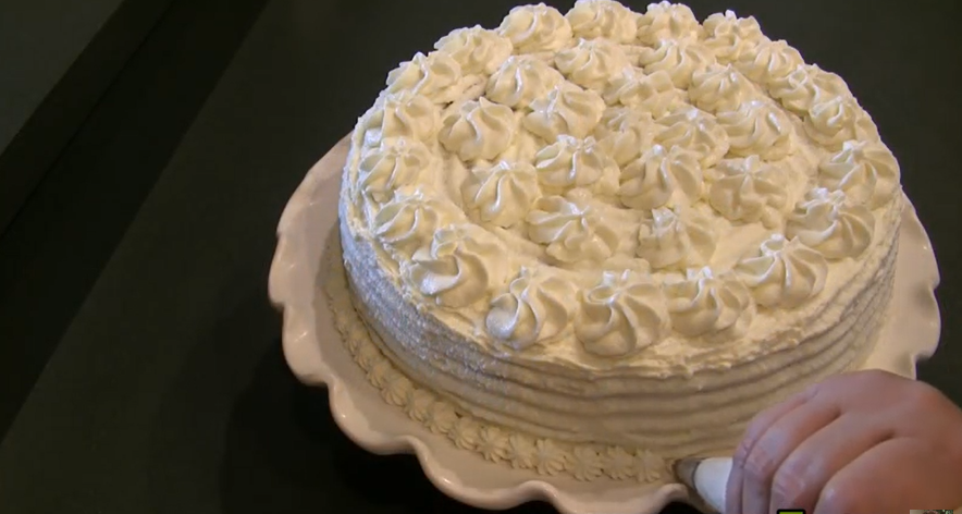 14. Повторяем всю последовательность еще раз — бисквит, кофейный напиток, крем. Только верхним слоем крема можно украсить верх и бока торта.