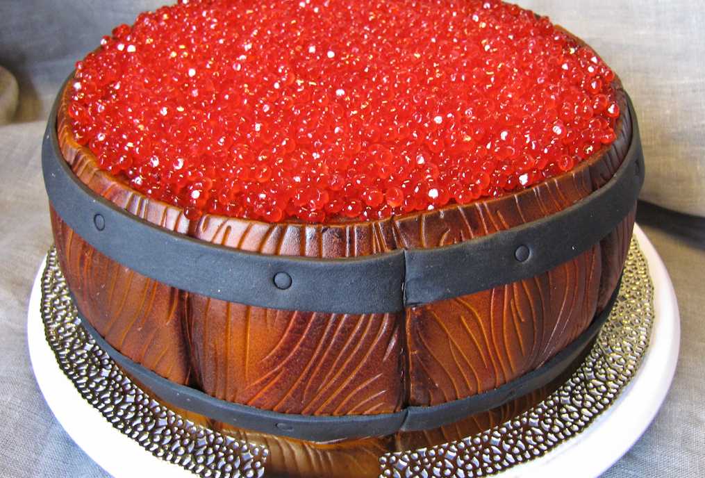 Торт из мастики «Бочонок с красной икрой» — рецепт