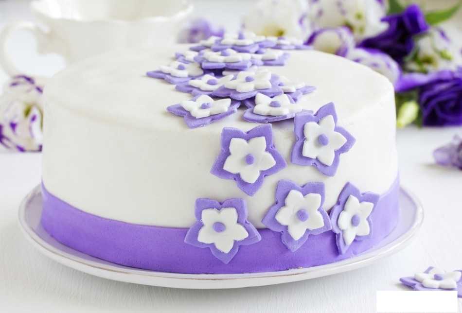 Еще один вариант бисквитного торта с мастикой. Указано общее количество коржей. Мастики понадобится около 300 граммов.