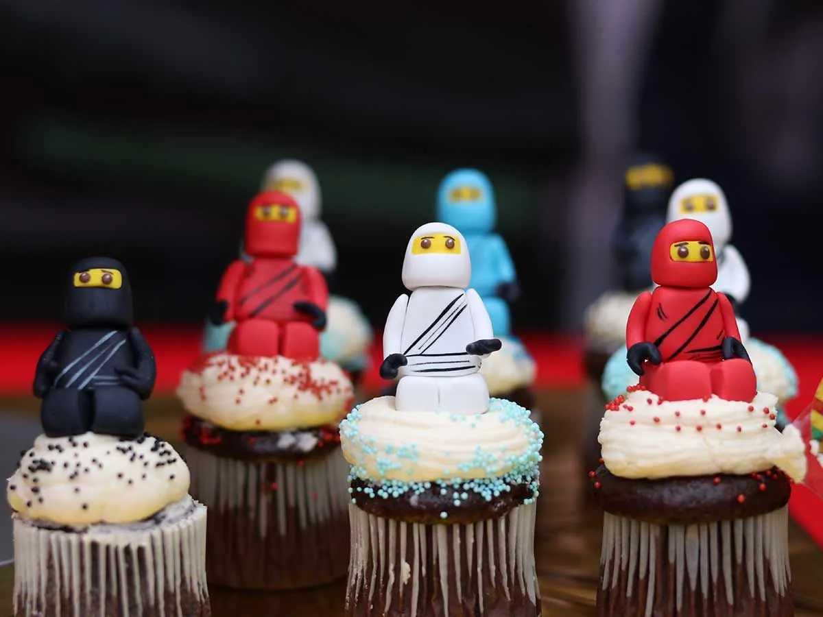 - Декор. Чтобы придать мастике нужный цвет, смешайте ее с небольшой порцией красителя, размяв, как пластилин. Сделать из желтой мастики тонкий слой – это будут лицо и кисти рук ниндзя. Из черного слоя сделать туловище и штаны. Из красной (синей, зеленой) мастики – маску для лица, рукава и элементы одежды (можно найти фото Лего-человечка и отталкиваться от него). Из обрезков черного цвета оформить очертание глаз и бровей.