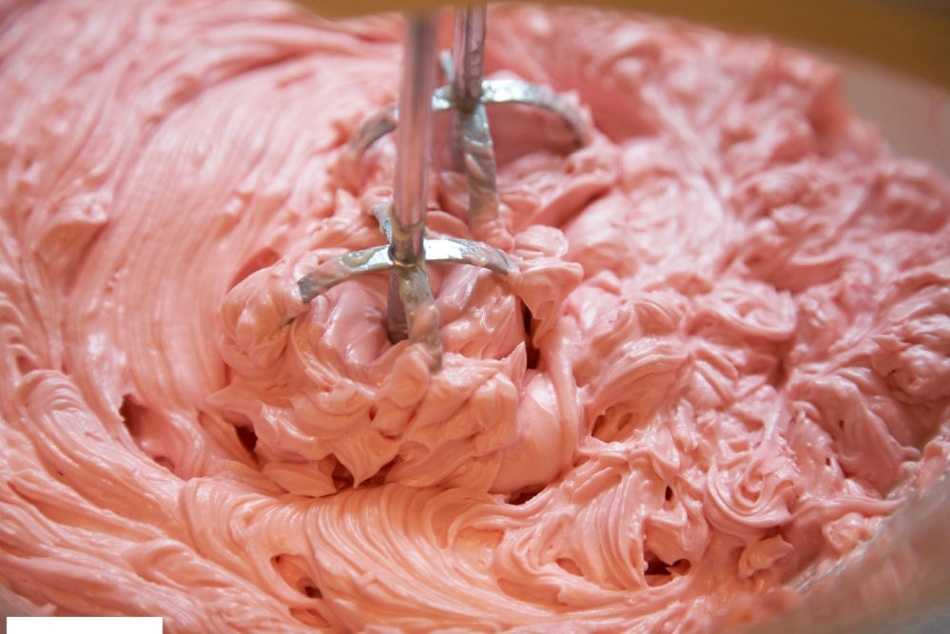 - Влейте сливки. Продолжайте взбивать, чтобы получилась пышная масса