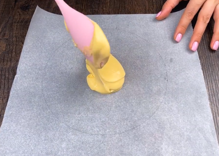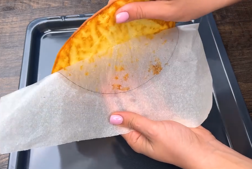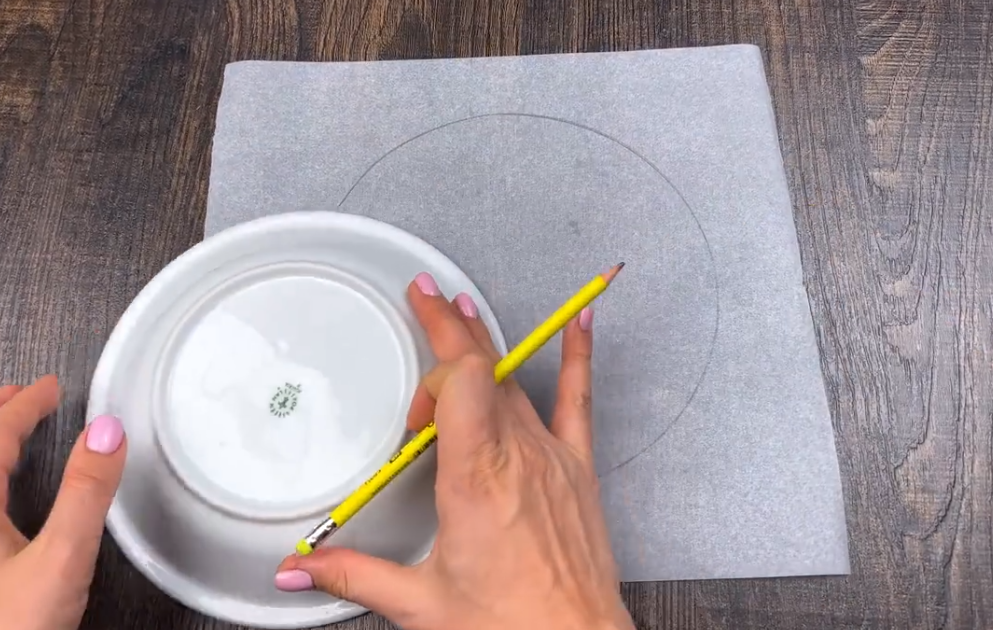 - для получения на пергаментной бумаге ровного круга используют кольцо для формовки, разъемную форму для выпекания или плоскую тарелку;