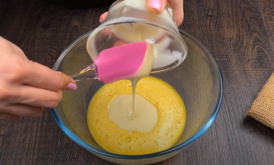 - Залейте белки один за другим и перемешайте, чтобы соединить.