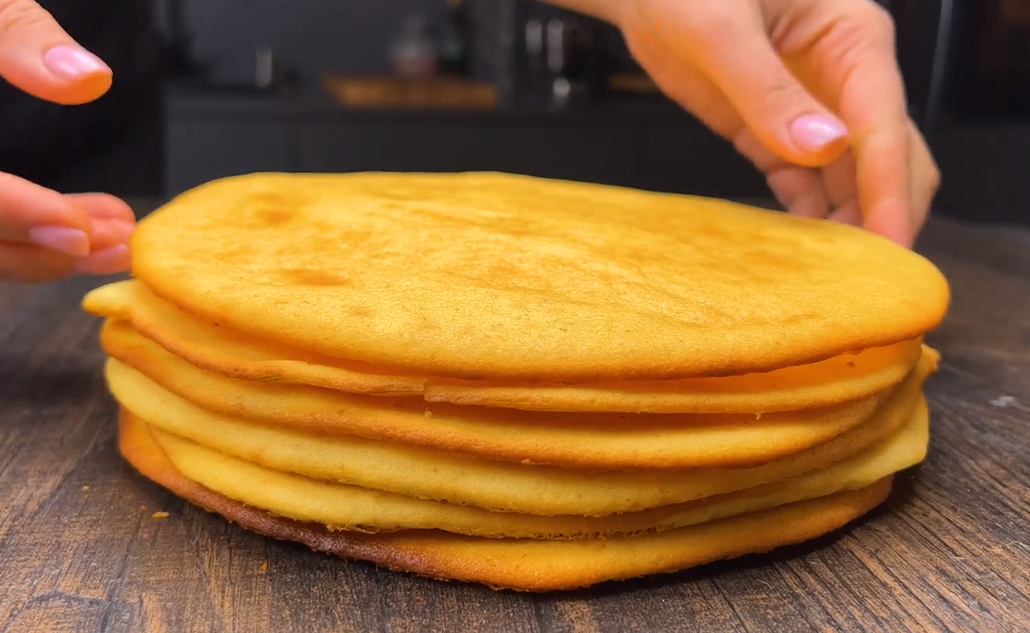 - коржей должно быть много не менее 8-14, выпекание каждого из них занимает максимум 5 минут;