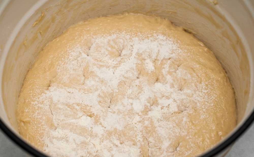 - Смешайте 2 массы вместе, закройте миску крышкой и оставьте опару на 12 ч. За это время она должна подойти.