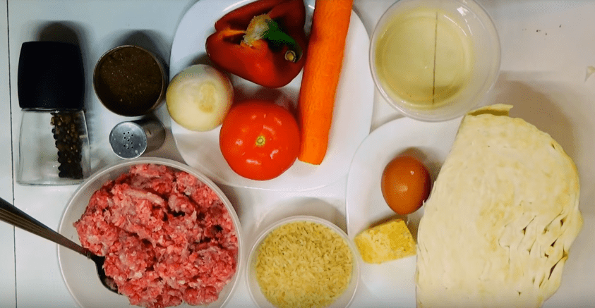 Запеканка из свежей капусты с мясным фаршем и рисом