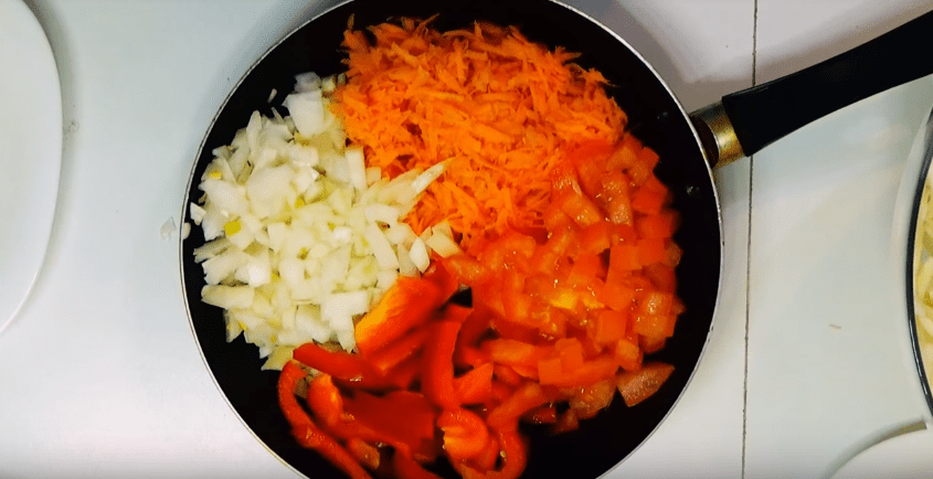 4. Обжариваем овощную смесь постоянно помешивая в течение 8-10 минут, чтобы овощи размякли и пустили аромат.