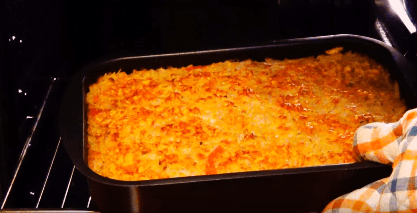А вот рецепт мясной запеканки с рисом. Он уже посложнее и вполне может считаться полноценным обеденным блюдом.