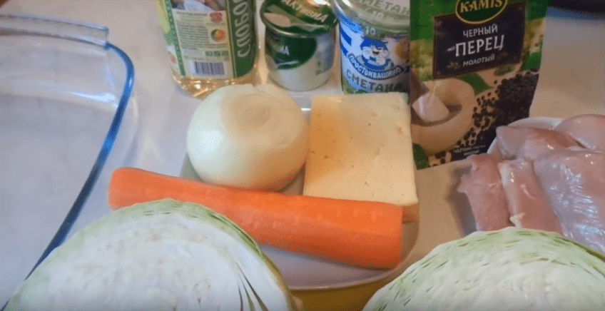 А вот эта запеканка по праву называется диетической. Постное куриное филе и овощи. Лучшее сочетание нежирного мяса и клетчатки. Ну и сметана в качестве заправки, как вы понимаете, гораздо лучше майонеза. Но и ее при желании можно заменить на маложирный натуральный йогурт.