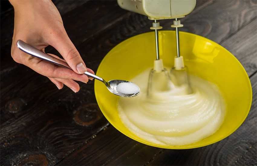 До крепких пиков взбейте белки в отдельной емкости.