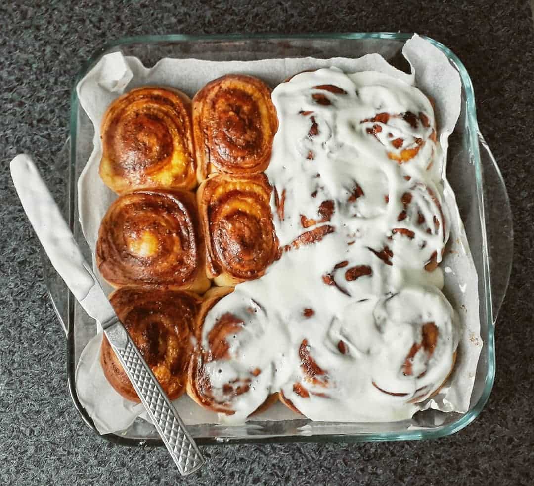 - Масло смешайте со сливками, доведите их до кипения и смажьте соусом готовую выпечку. Верните булочки в выключенную духовку и подержите их там 20 минут.