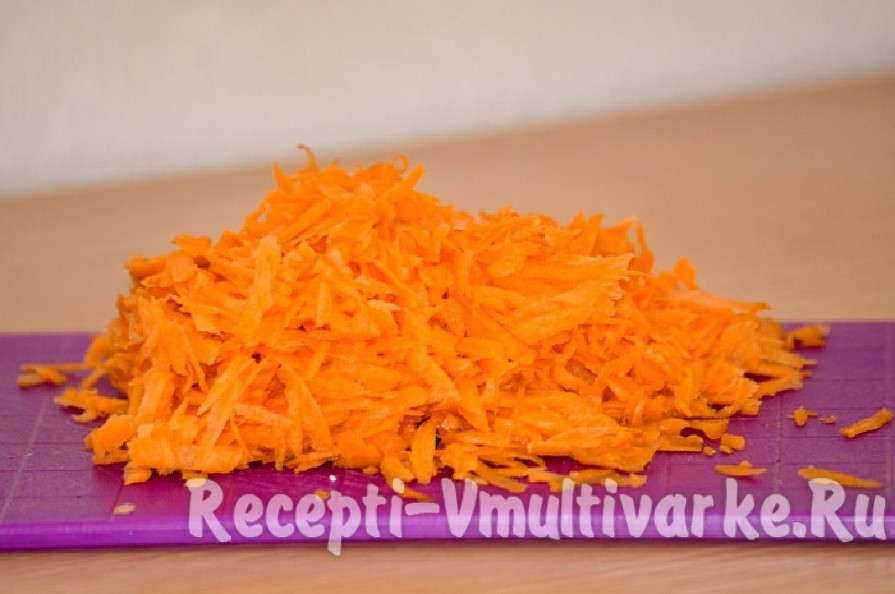 Отставляю заготовку в сторону и тру на крупной терке морковку и мелко режу лук. Очень вкусно, когда нарезаешь морковь вручную брусочками.