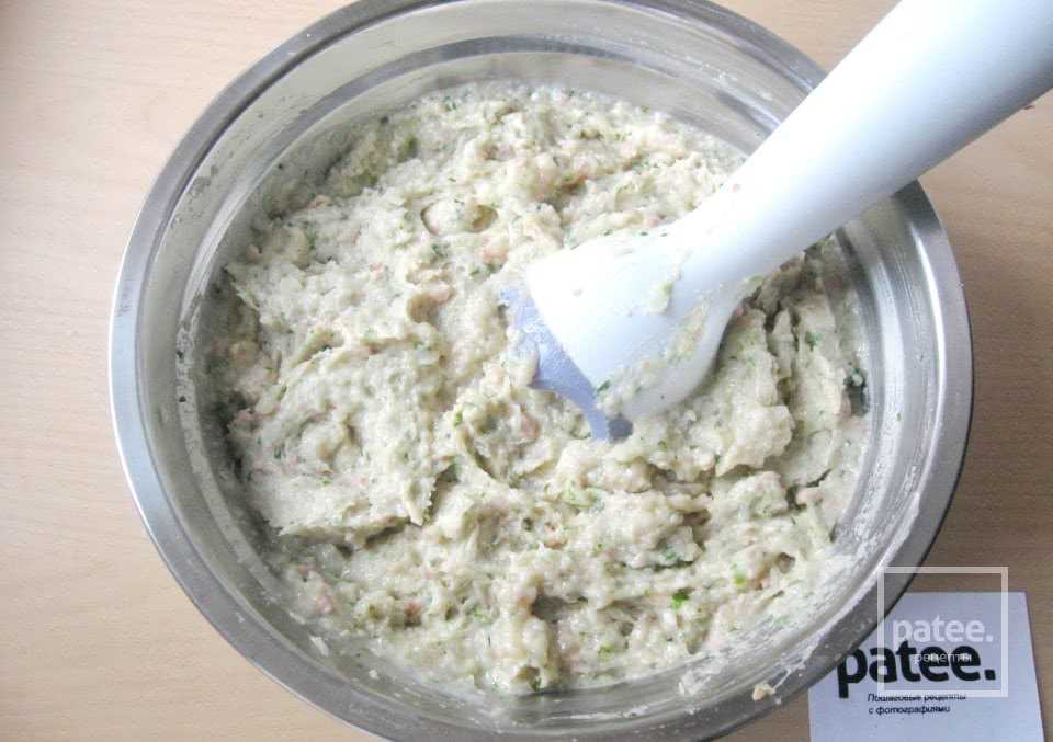 - Вареное филе окуня перекладывают в чашу блендера, добавляют белок и кетчуп. Взбивают блендером.