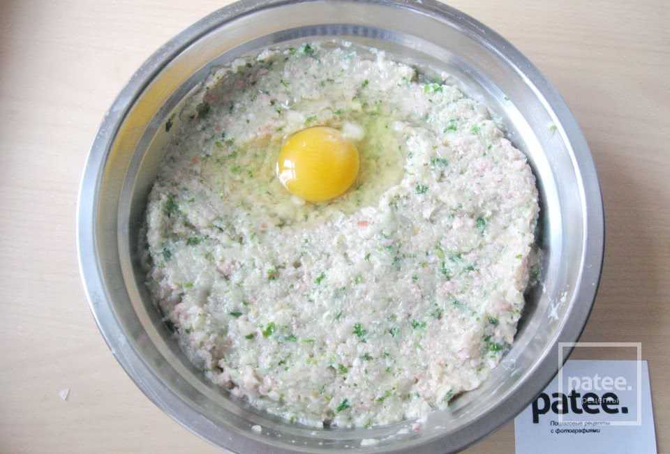 В полученный фарш кладем сырое куриное яйцо. Перемешиваем.