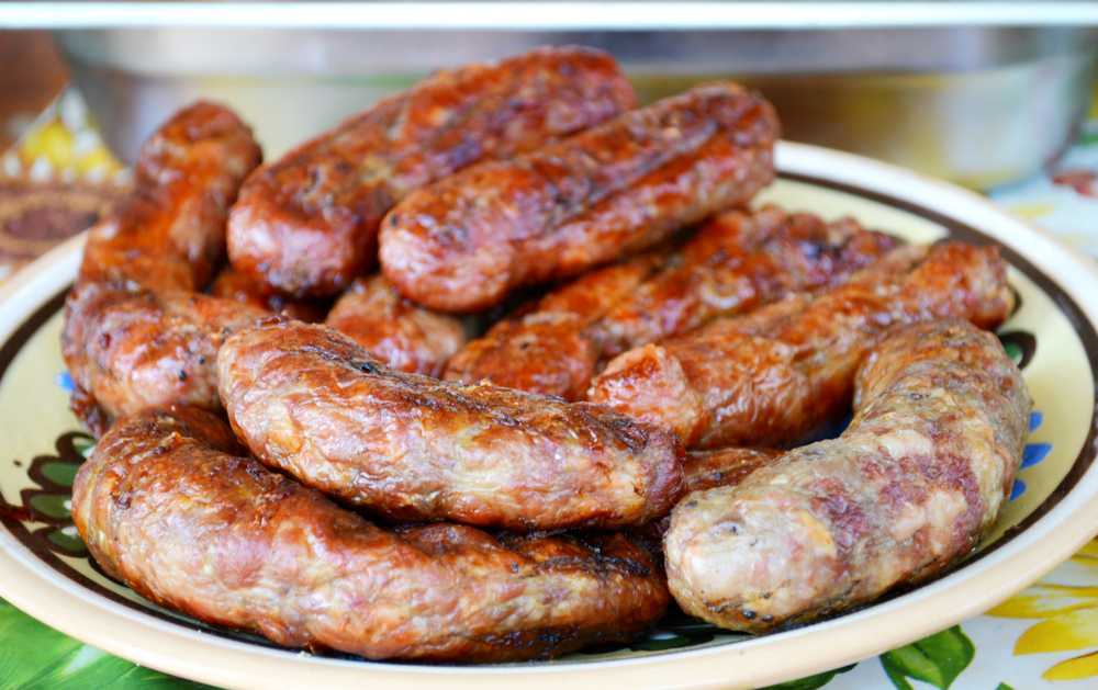 Основой для фарша служит свинина и говядина. Чтобы поджарить колбасу, используют натуральную оболочку.