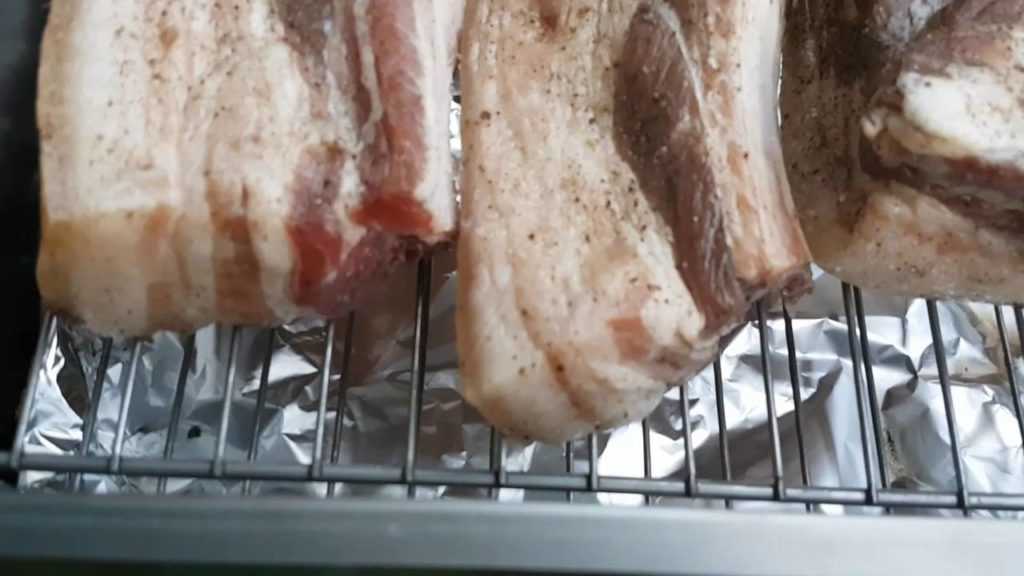 - Дальше над фольгой устанавливается металлическая решетка, на которую выкладывается подготовленное сало. Стоит отметить, что она должна располагаться над фольгой на высоте как минимум 5 сантиметров.