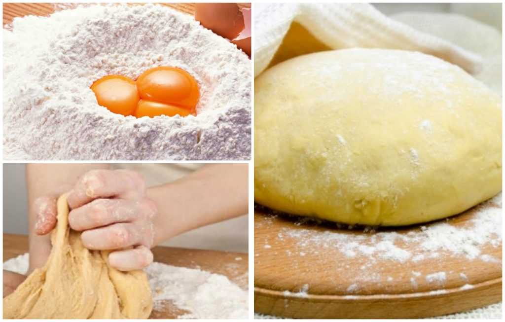 - Муку соединяют с яйцами и производят замес, вымешивая ком не менее 15 минут.