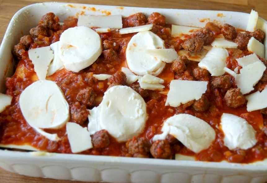 - Повторяй слои до конца ингредиентов и отправь лазанью в духовку на 25-30 минут при 190 градусах.