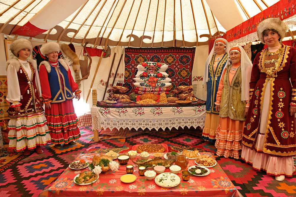 Башкирский народ очень гостеприимный. Они любят собирать гостей за праздничным столом и угощать их своими национальными блюдами, такими как: бак беляш, кэкры, кыстыбый, чак-чак. Мы сегодня приглашаем всех своих гостей к праздничному столу.