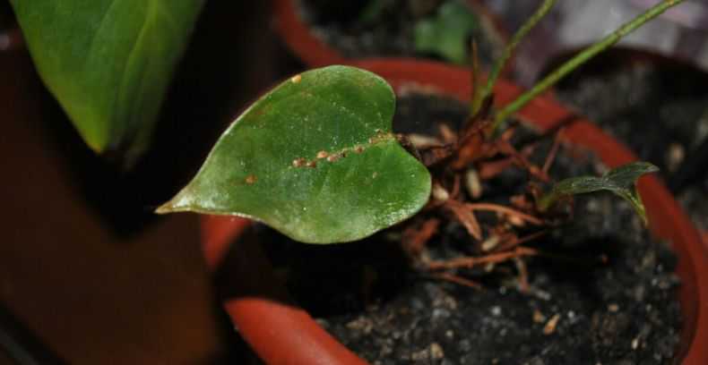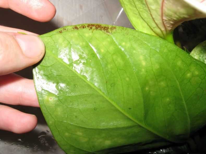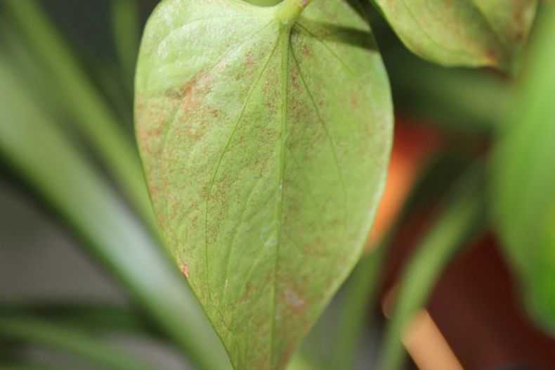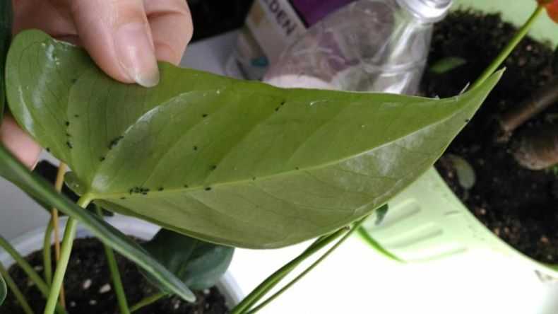 Более серьезное заражение потребует более тщательной работы, но все равно прополощите антуриум; сокращение количества насекомых на растении — это первый полезный шаг.