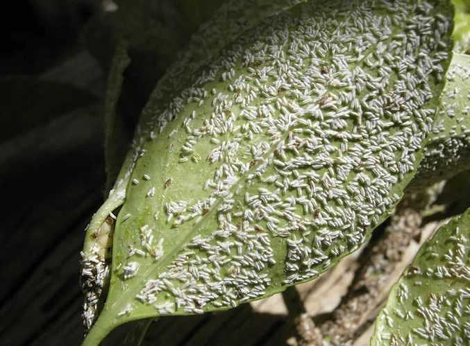- Белокрылки. Это крошечные белые летающие насекомые, которые питаются соком с нижней стороны листьев растений базилика, оставляя после своего вылета желтые пятна, называемые штрихами. Они также выделяют медовую росу, которая привлекает других вредителей, способных нанести дальнейший ущерб самому растению, если не принять меры достаточно быстро.