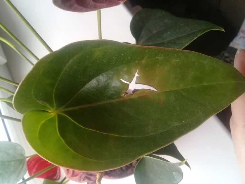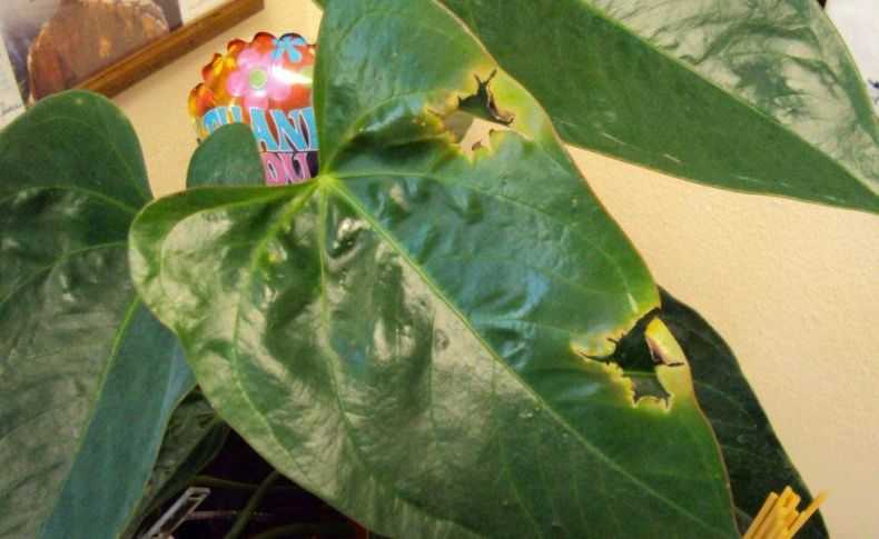 Настало время для небольшой сортировки. Если некоторые листья антуриума уже полностью обглоданы насекомыми, обрежьте их. Это поможет растению сохранить энергию и снизить скорость распространения заражения.